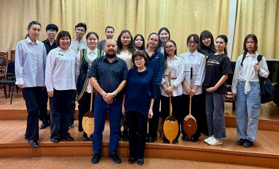 В рамках «Осенних Дней карьеры» в музыкальном колледже ИФИ Мария Сергеевна Сартыкова, Заслуженный работник культуры РХ и РФ, преподаватель ДМШ №1 им. А.А. Кенеля, провела мастер-класс по игре на хомысе.