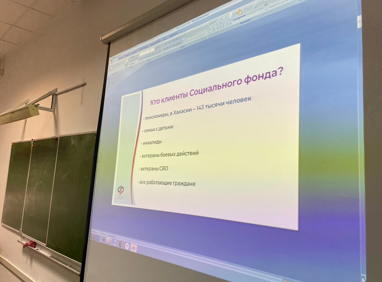 Сегодня студенты групп 4Ж, 4Ф и 5ХФ встретились с Ольгой Сергеевной Тарасовой, начальником отдела оценки пенсионных прав застрахованных лиц и заблаговременной работы номер 1 Отделения СФР по Республике Хакасия. Она провела тематическую лекцию в рамках образовательного проекта «Дни пенсионной грамотности 2025».